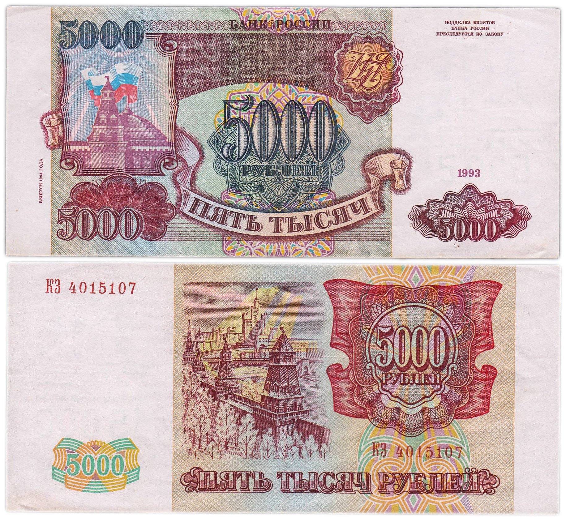 5000 рублей 1993 (модификация 1994), серия КЗ
