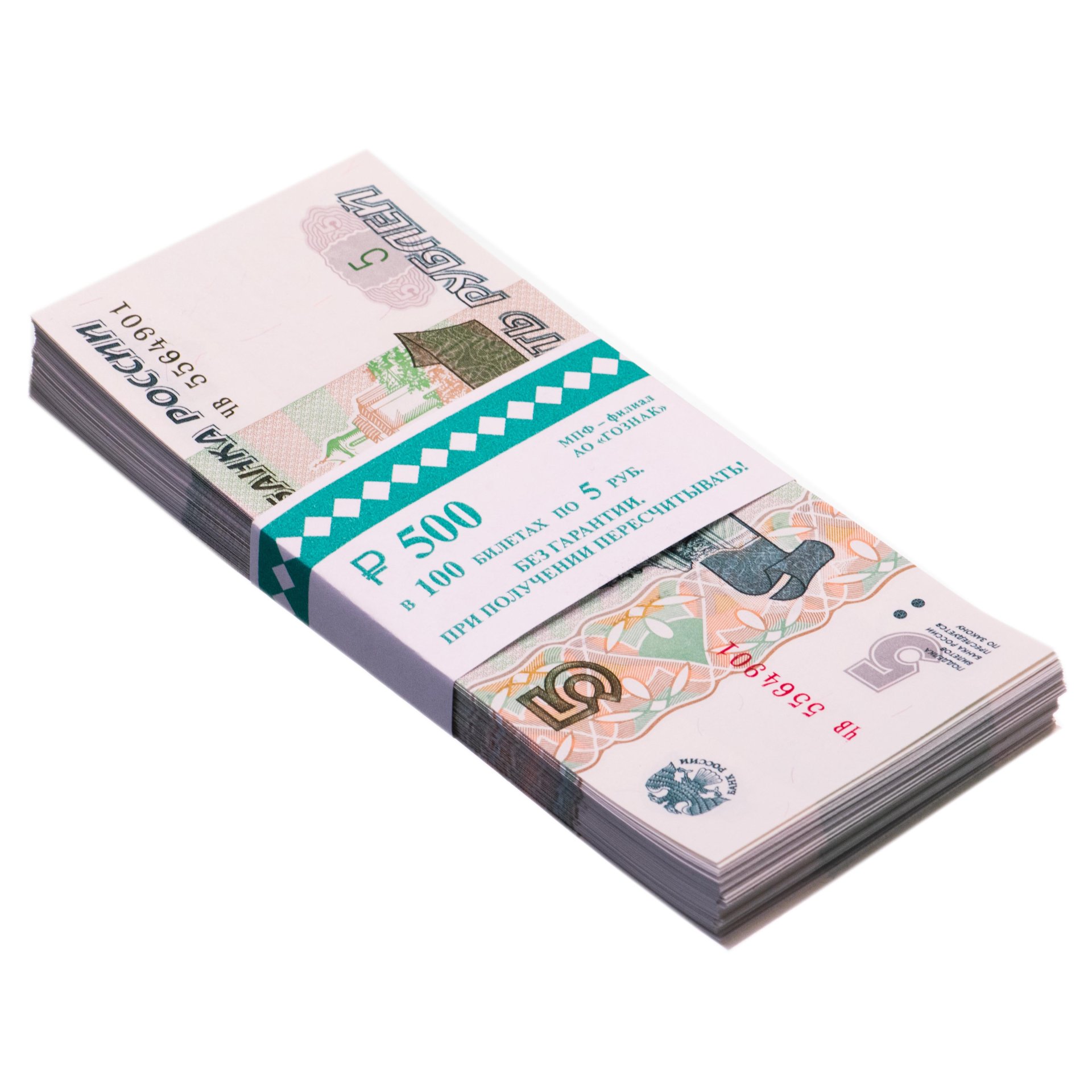 5 рублей 2022 (НОВЫЙ выпуск образца 1997) серия чв (корешок 100шт, номера не по порядку) [ПРЕСС]