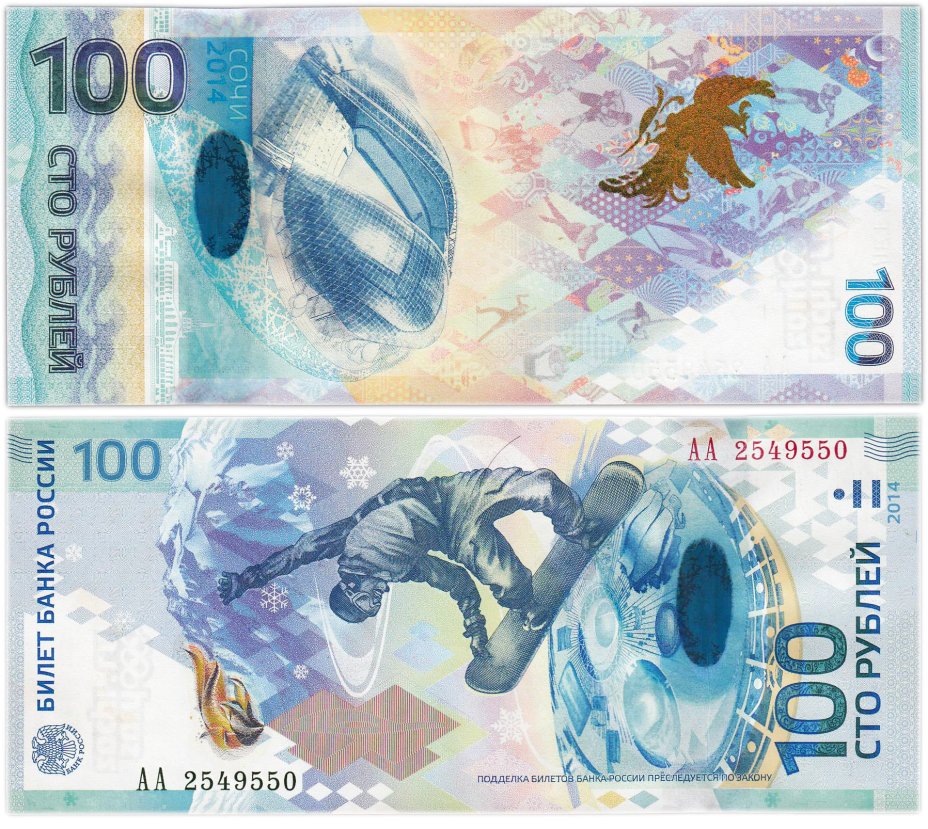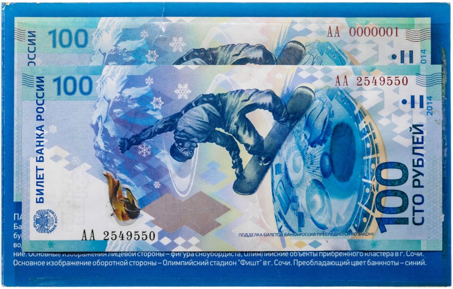 Первым выпуском была купюра, посвящённая XXII зимним Олимпийским играм, проходившим в Сочи. В нашем магазине представлены как базовые серии памятных банкнот, так и серия замещения отбракованных экземпляров(буквы «Аа»), тираж которой заметно меньше. От обычных бумажных денег сочинскую купюру отличает красочное оформление и демонстрация современных средств защиты от подделок.