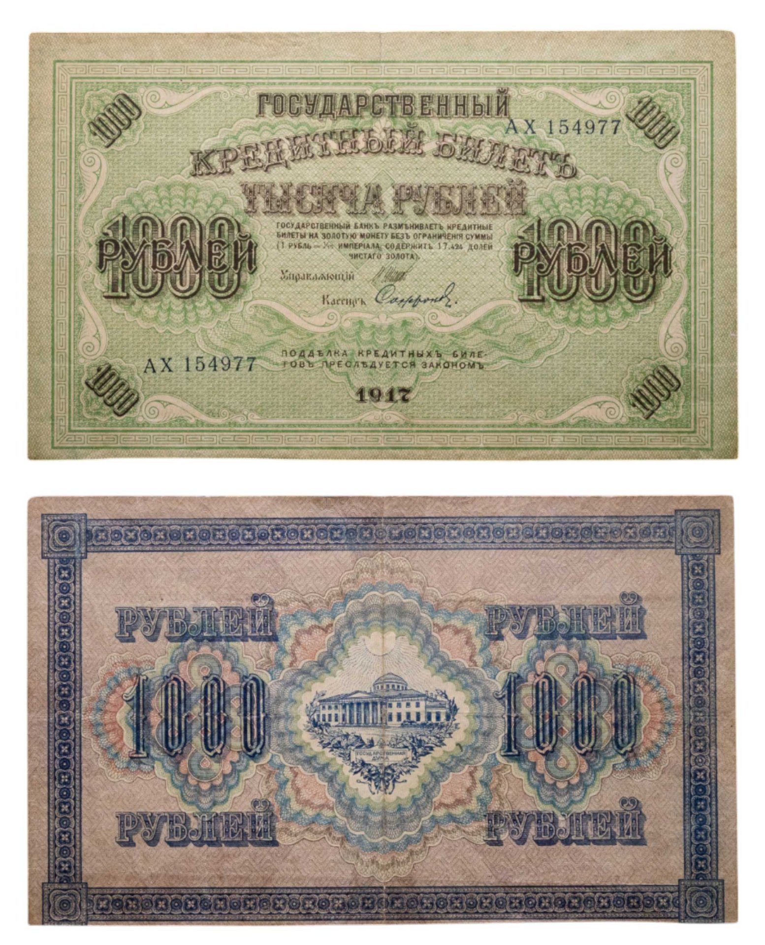 1000 рублей 1917 управляющий Шипов, кассир Софронов