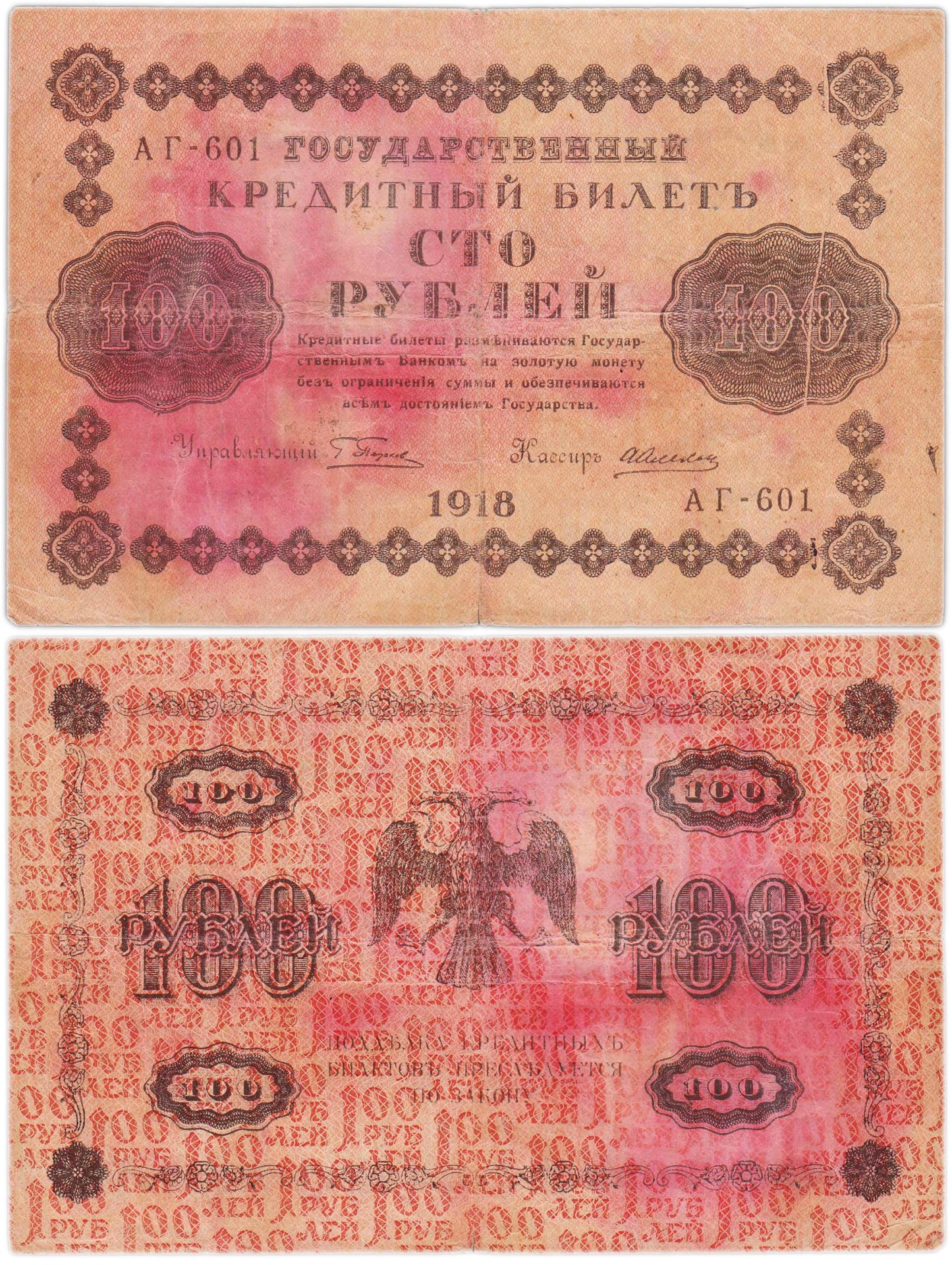 100 рублей 1918 года управляющий Пятаков, кассир Алексеев