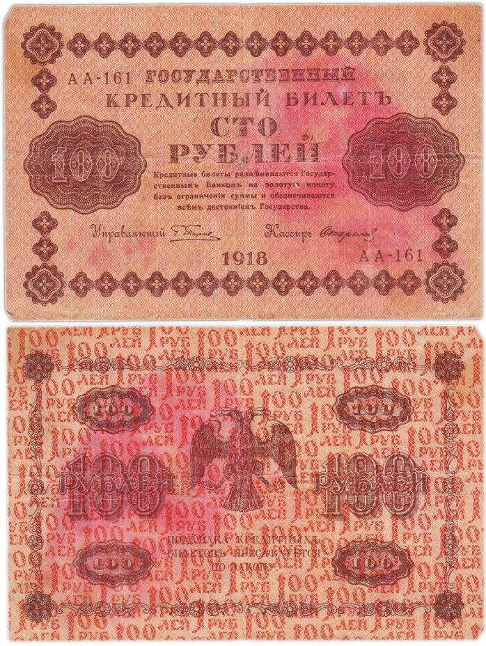 100 рублей 1918 года управляющий Пятаков, кассир Стариков