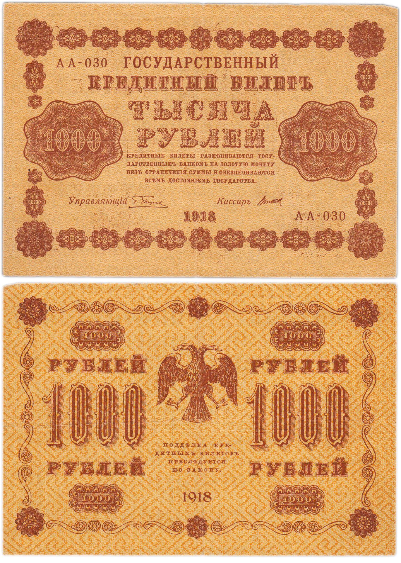 купить 1000 рублей 1918 управляющий Пятаков, кассир Метц
