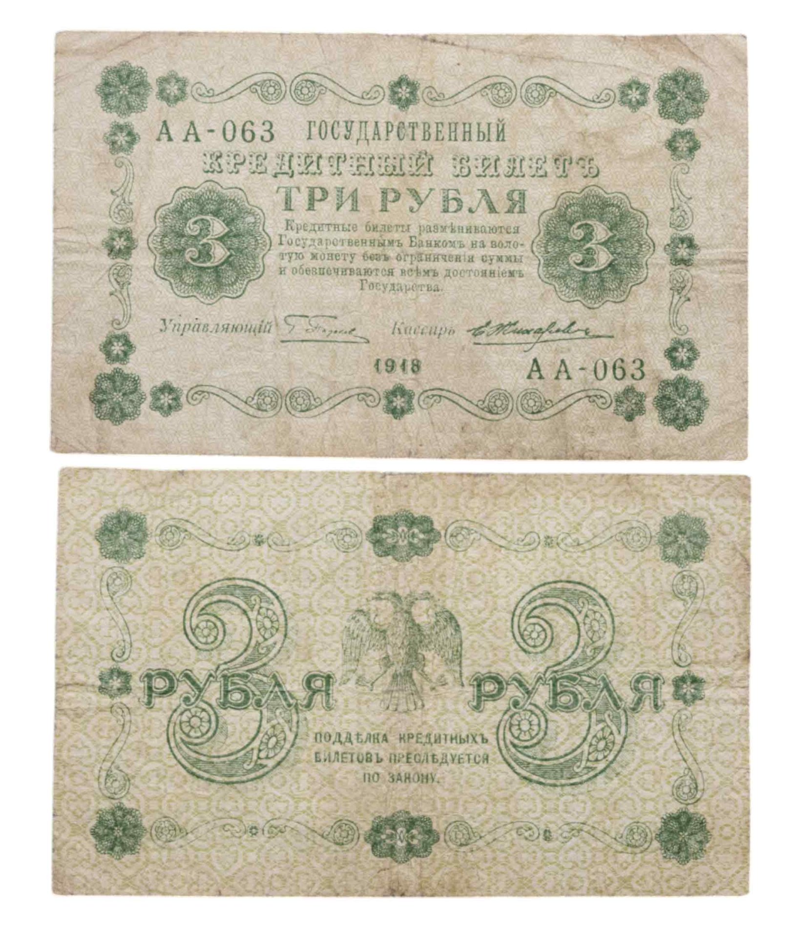 3 рубля 1918 управляющий Пятаков, кассир Жихарев