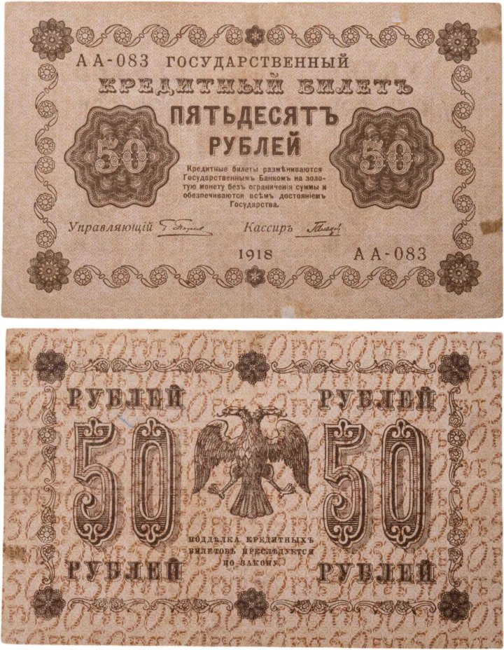 50 рублей 1918 управляющий Пятаков, кассир Гальцов