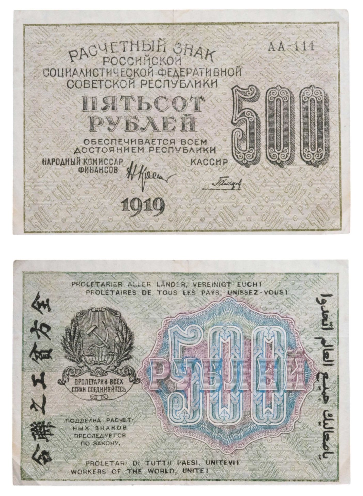 500 рублей 1919 управляющий Крестинский водяной знак "Вертикальные цифры номинала", серия АА