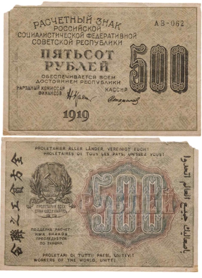 500 рублей 1919 наркомфин Крестинский, кассир Стариков