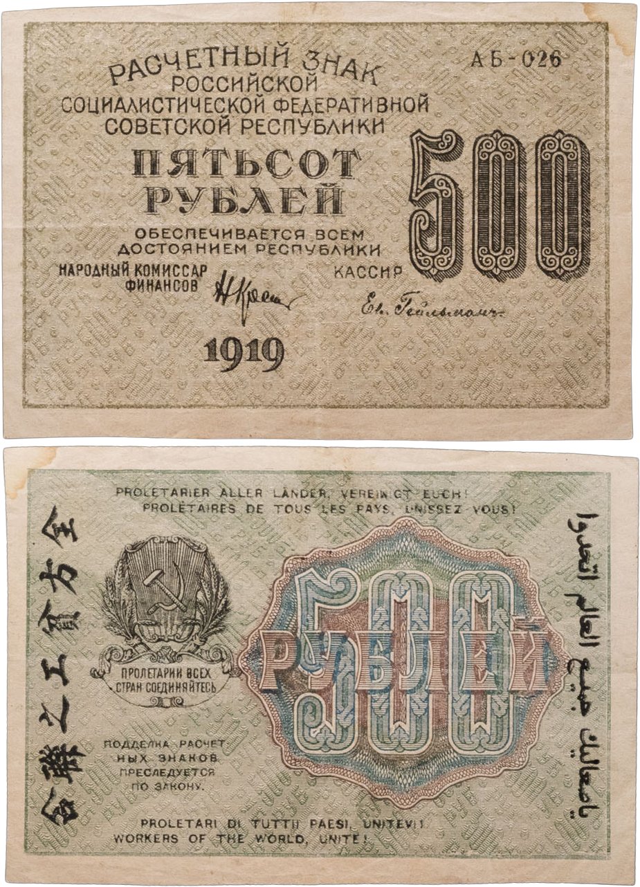 500 рублей 1919 наркомфин Крестинский, кассир Гейльман
