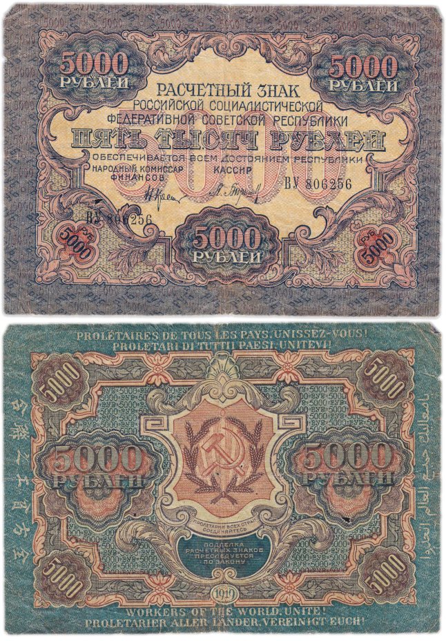 5000 рублей 1919 наркомфин Крестинский, кассир Барышев