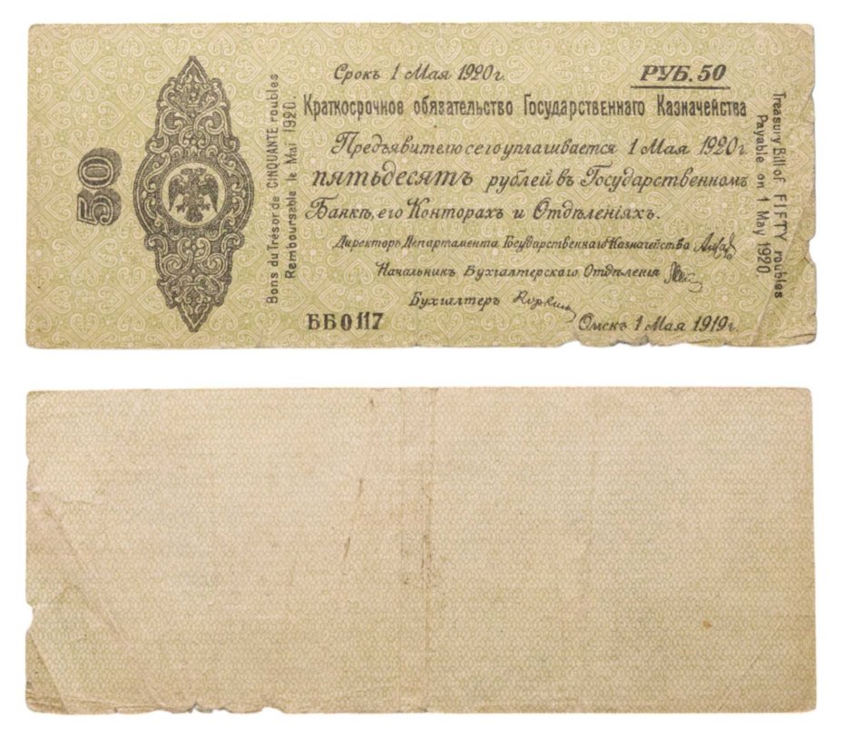 Краткосрочное Обязательство 50 рублей 1919-1920 Омск