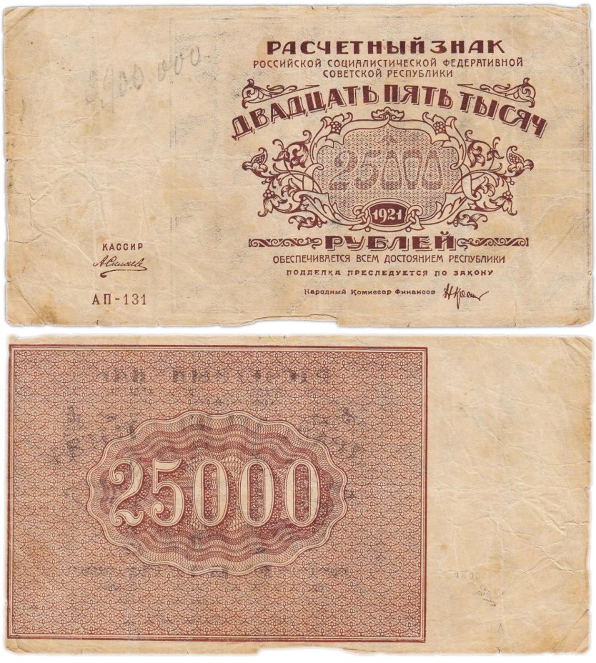 25000 рублей 1921 кассир Силаев, водяной знак "Теневые звезды", серия АП