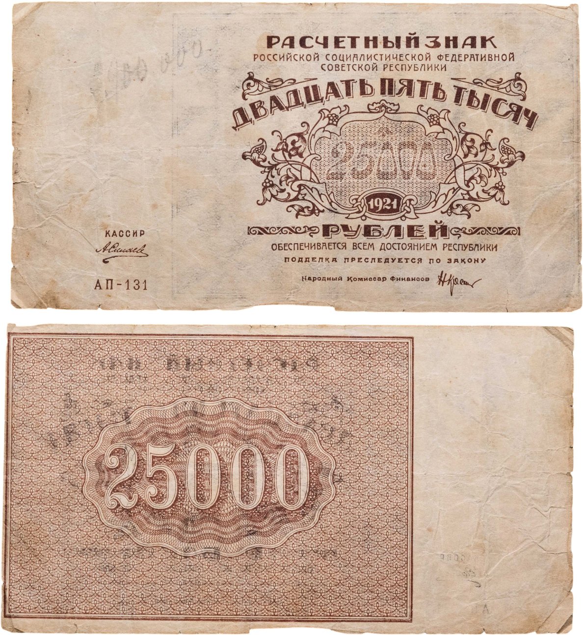 купить 25000 рублей 1921 кассир Силаев, водяной знак "Теневые звезды", серия АП