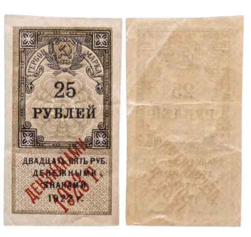25 рублей 1922 (надпечатка Дензнаками 1923)