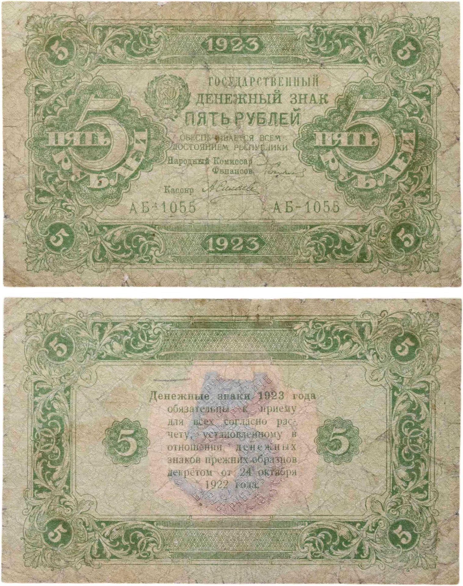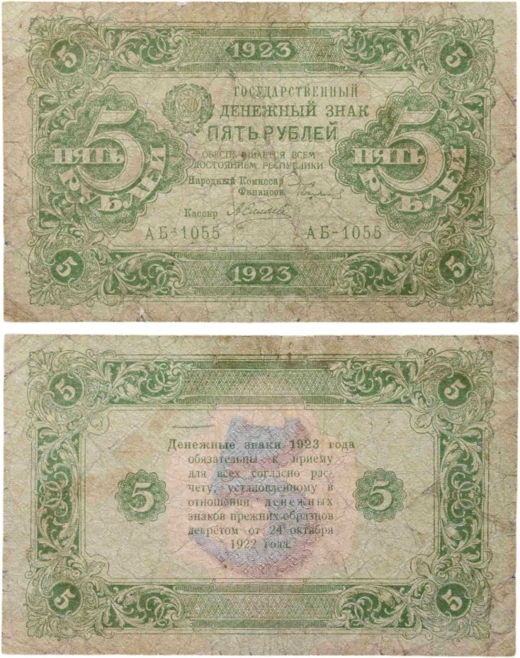 5 рублей 1923 наркомфин Сокольников, кассир Силаев