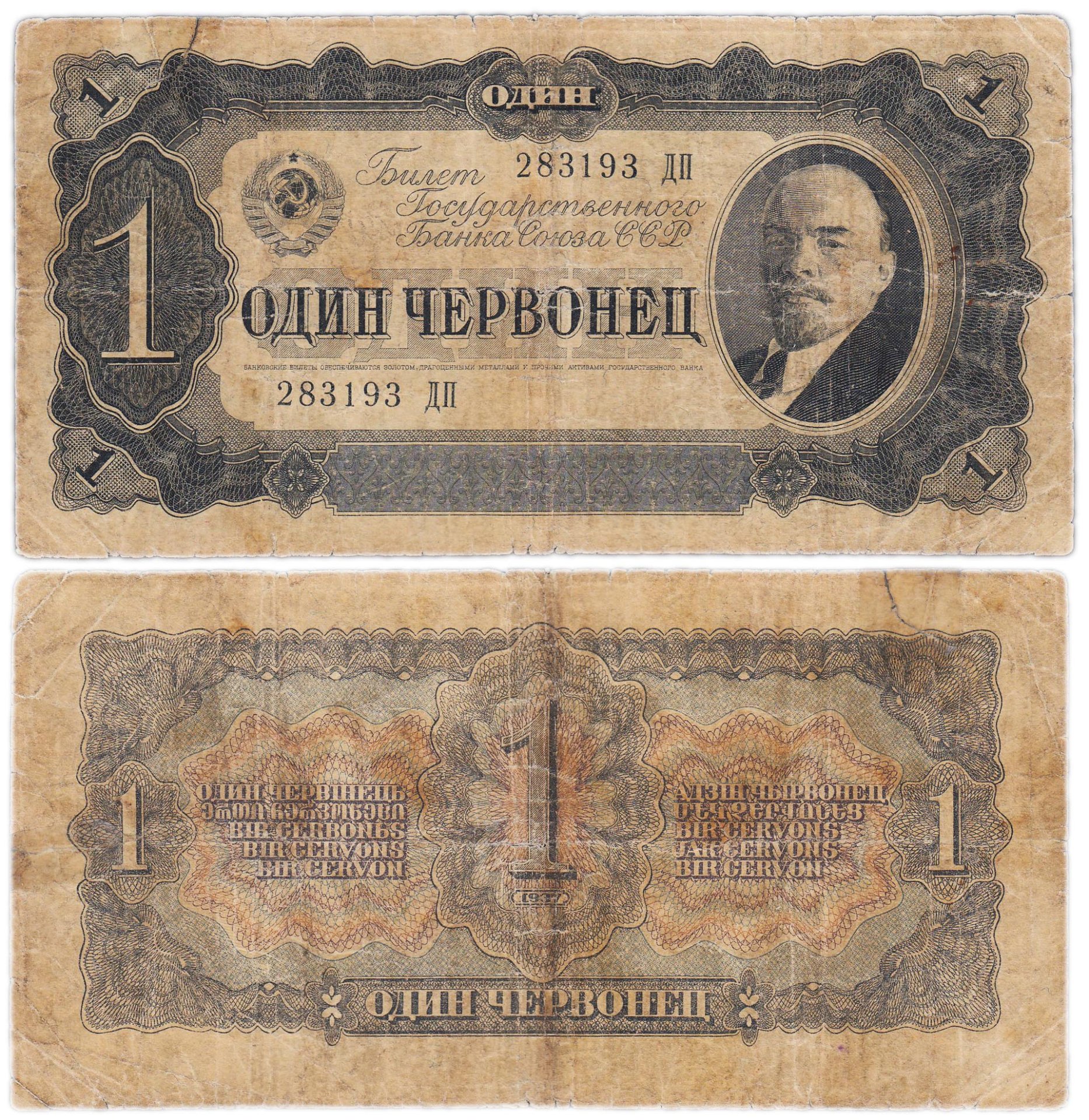 купить 1 червонец 1937 тип литер Большая/Большая (В.И. Ленин)