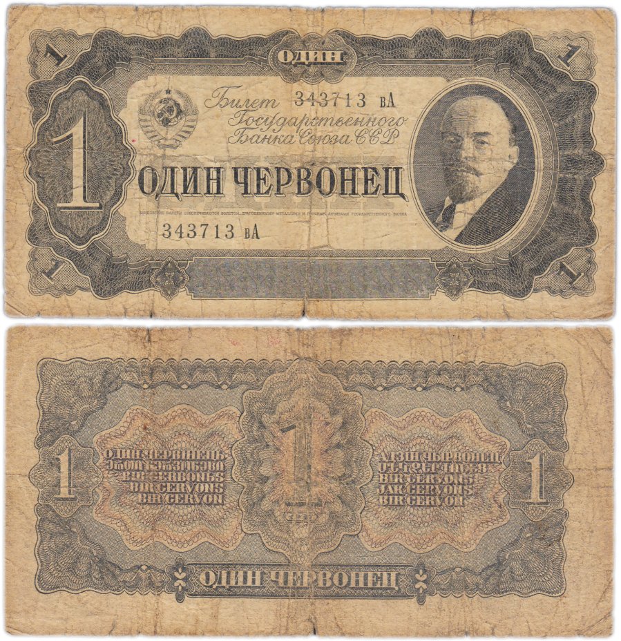 1 червонец 1937 тип литер маленькая /Большая (В.И. Ленин)