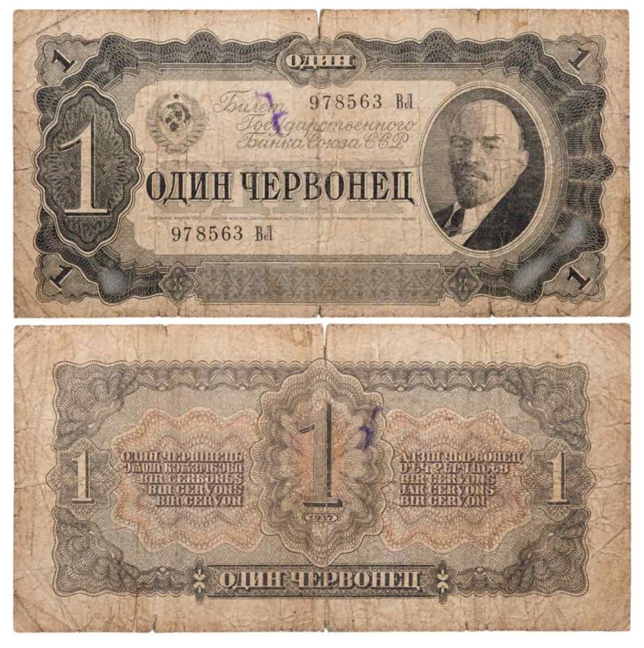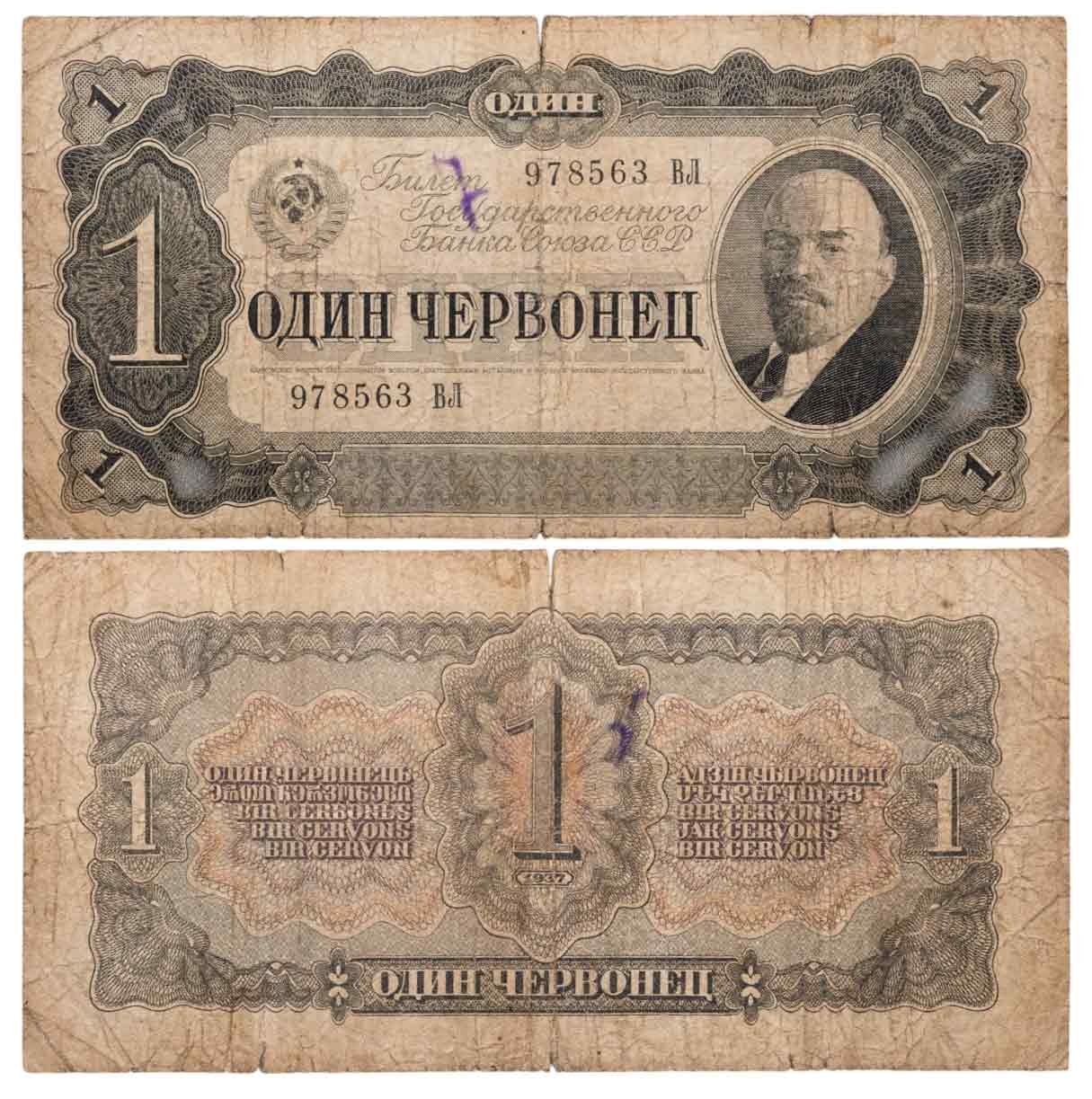 купить 1 червонец 1937 тип литер Большая/Большая (В.И. Ленин)