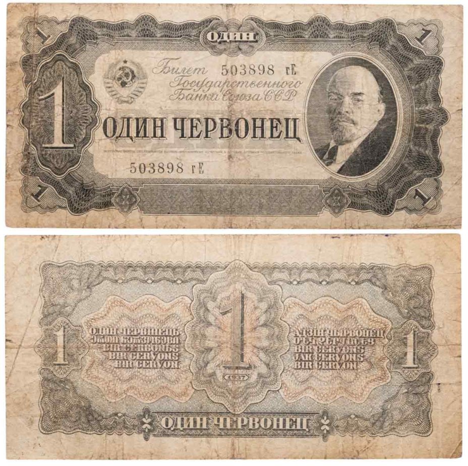 1 червонец 1937 тип литер Маленькая/Большая (В.И. Ленин)