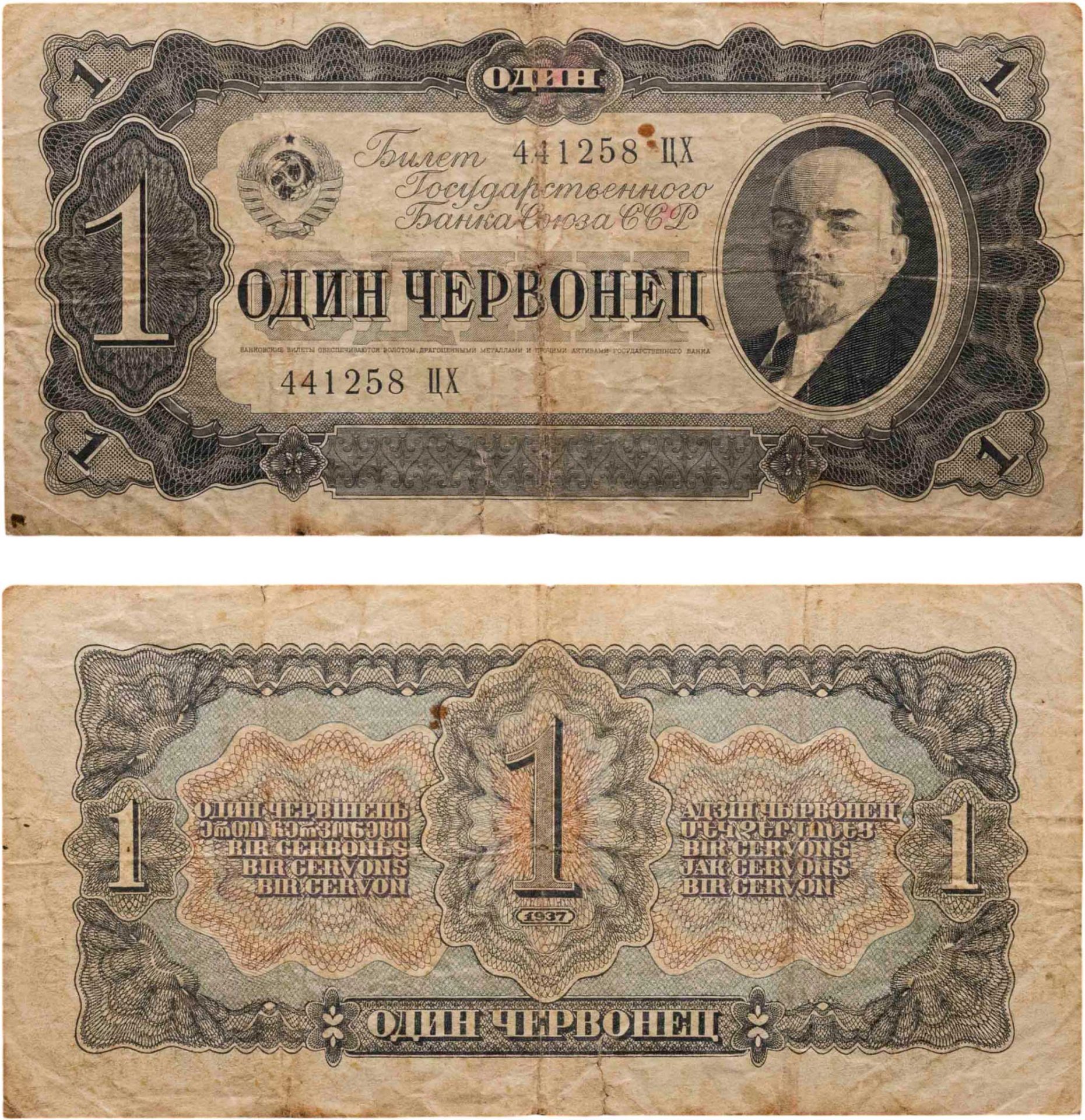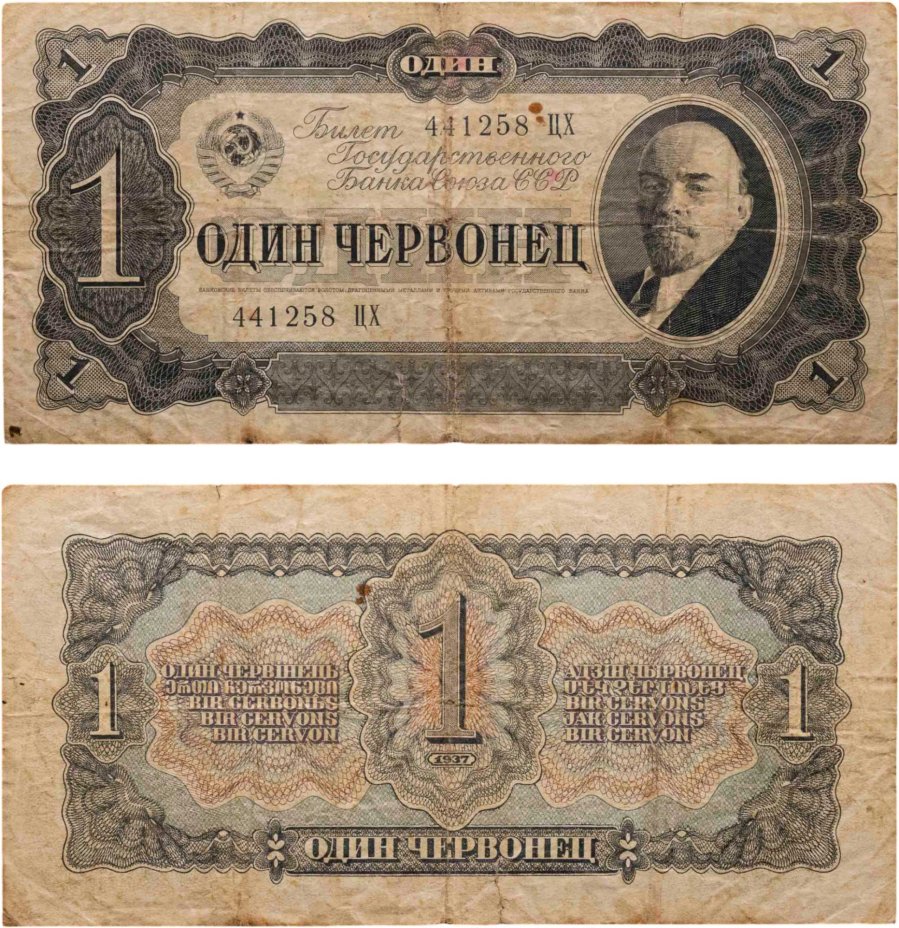 1 червонец 1937 тип литер Большая/Большая (В.И. Ленин)