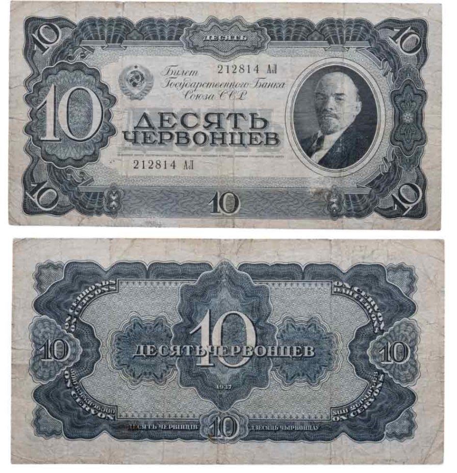 купить 10 червонцев 1937 тип литер Большая/Большая (В.И. Ленин)