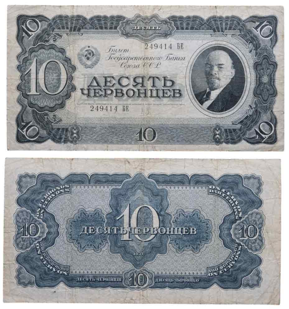 купить 10 червонцев 1937 тип литер Большая/Большая (В.И. Ленин)