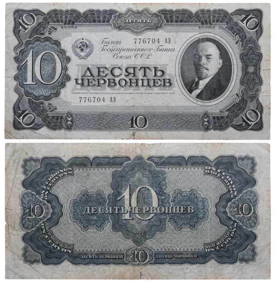 купить 10 червонцев 1937 тип литер Большая/Большая (В.И. Ленин)