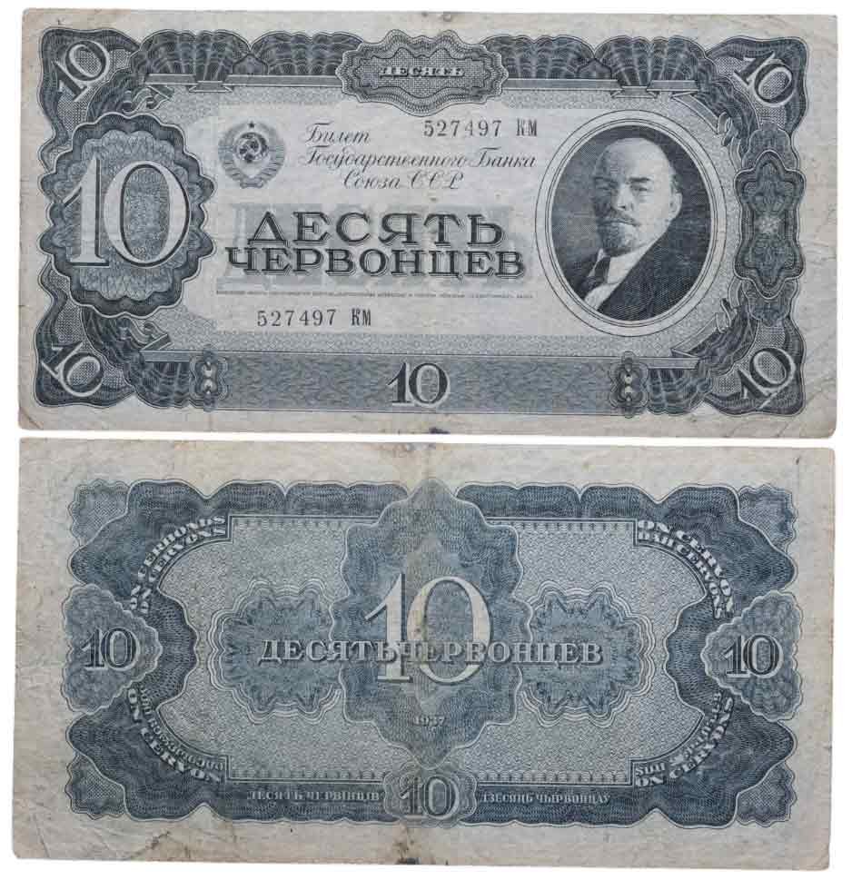 купить 10 червонцев 1937 тип литер Большая/Большая (В.И. Ленин)