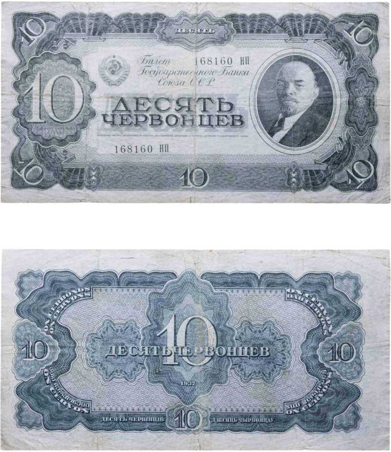 10 червонцев 1937 тип литер Большая/Большая (В.И. Ленин)
