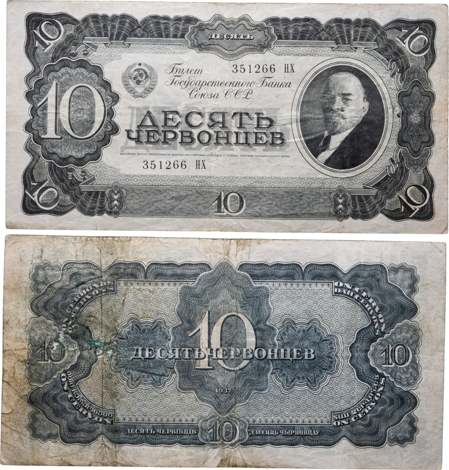 купить 10 червонцев 1937 тип литер Большая/Большая (В.И. Ленин)
