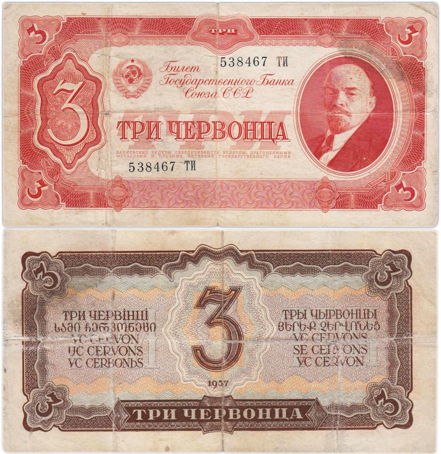 Купить 3 червонца 1937 тип литер Большая/Большая
