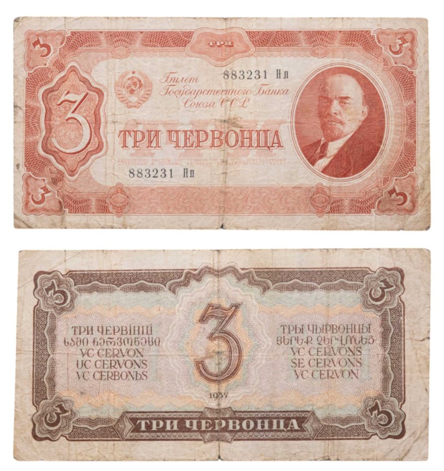 3 червонца 1937 тип литер Большая/Маленькая (В.И. Ленин)