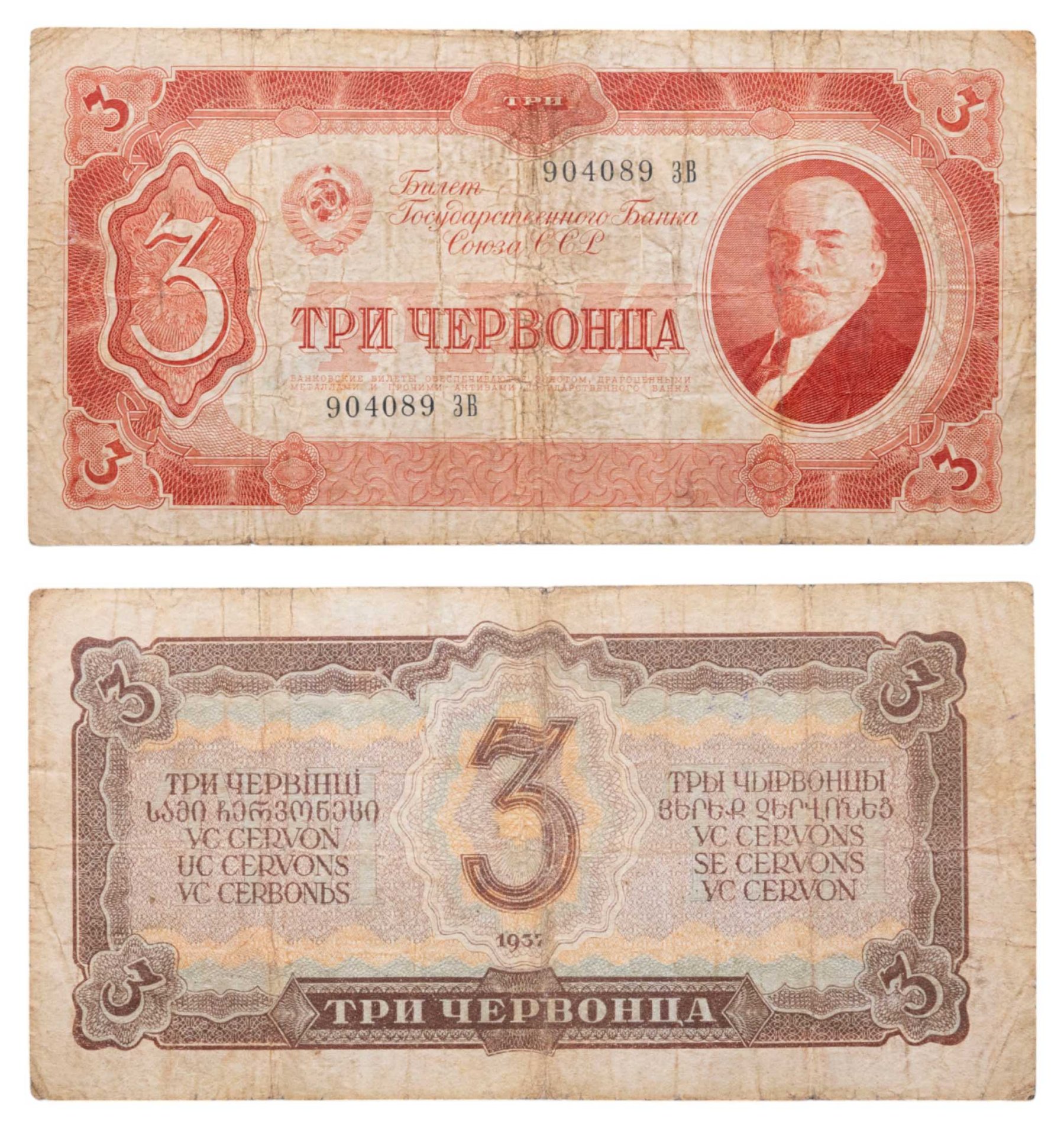 Купить 3 червонца 1937 тип литер Большая/Большая (В.И. Ленин)