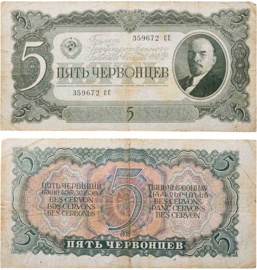 5 червонцев 1937 тип литер Большая/Большая Литера СС