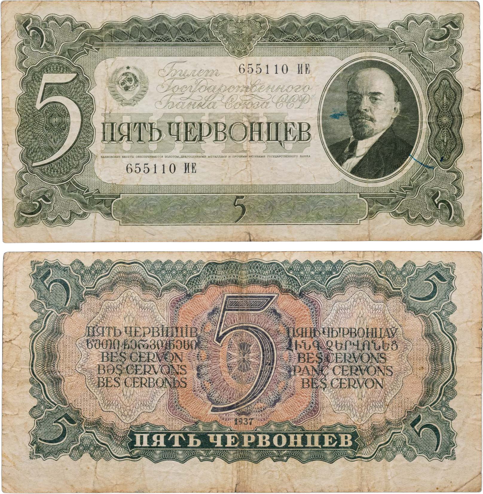 Купить 5 червонцев 1937 тип литер Большая/Большая