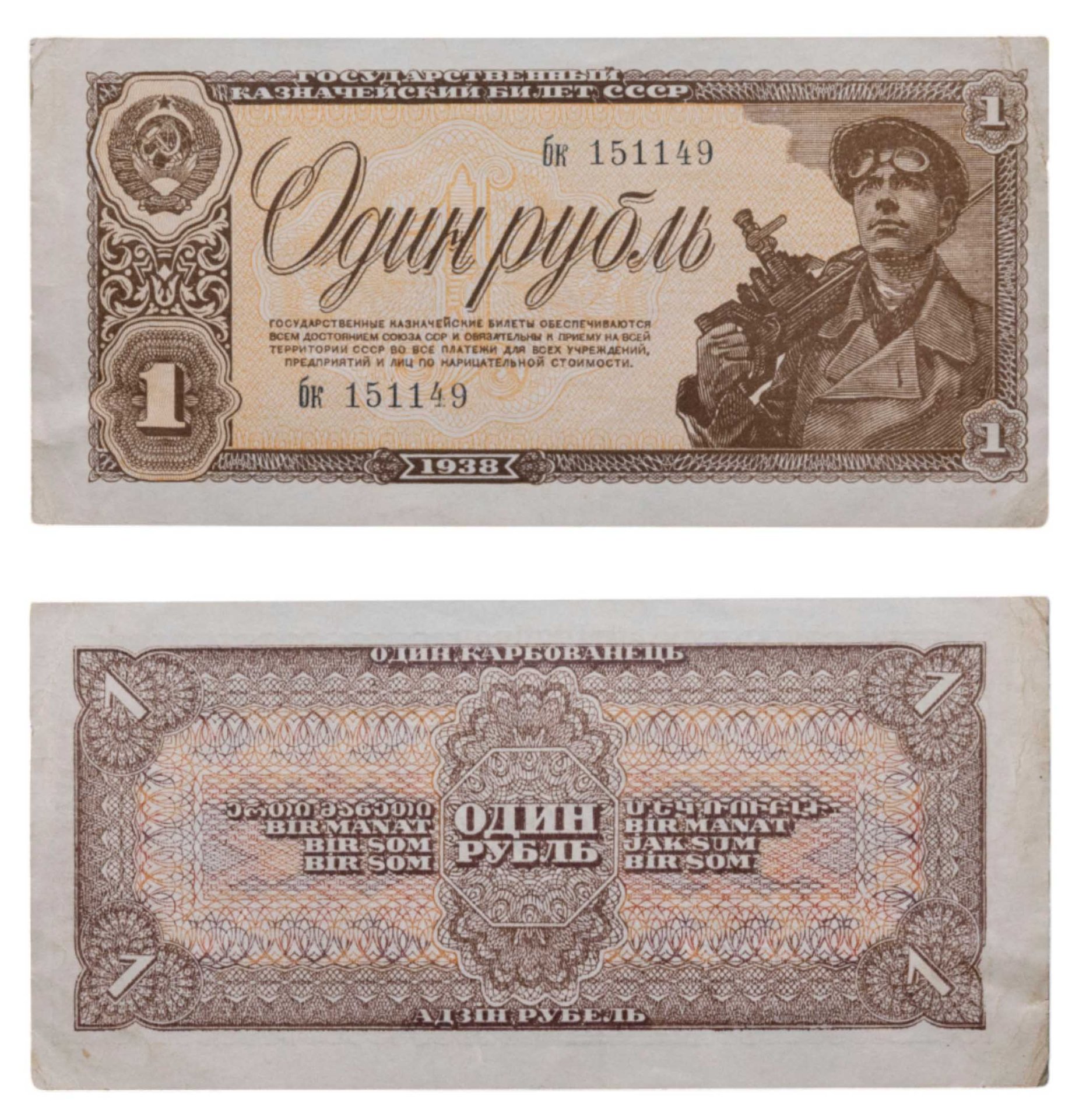 1 рубль 1938 тип литер маленькая/маленькая, серия бк