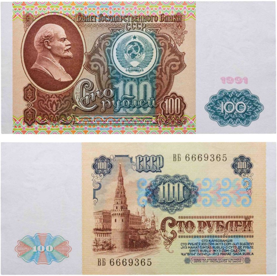 100 рублей 1991 водяной портрет В. И. Ленина