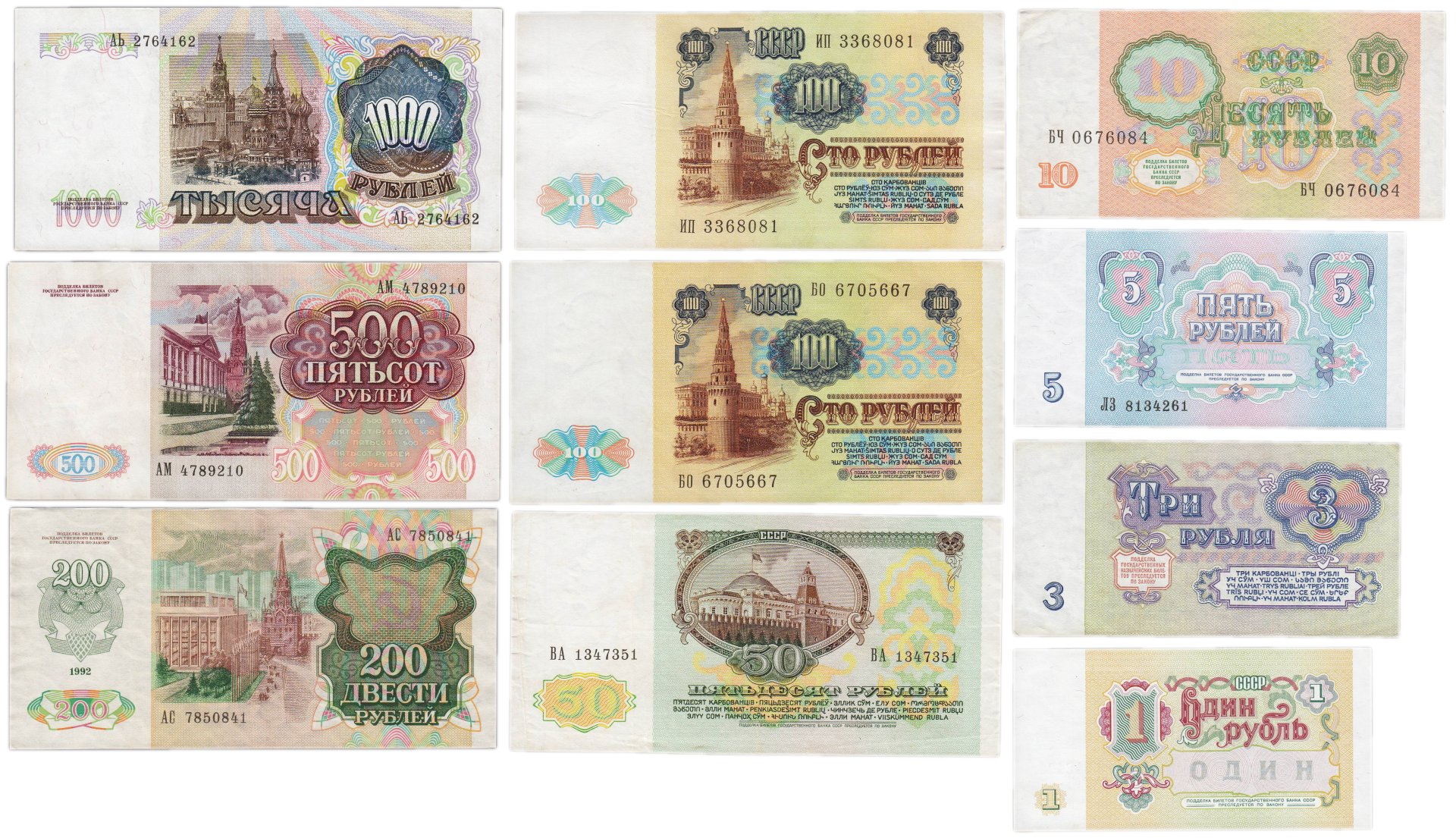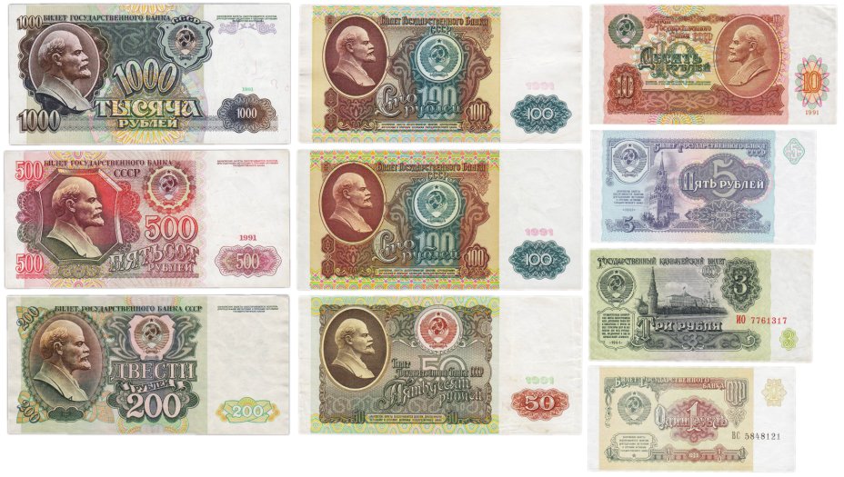Набор банкнот СССР 1991 года с разновидностью 100 рублей