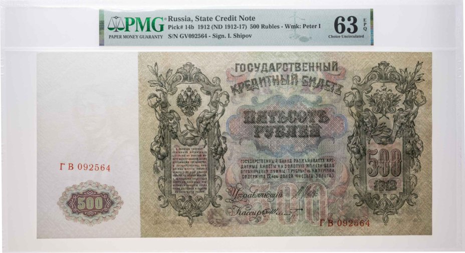 Впервые печать купюр этого номинала была осуществлена в 1897-м году, и уже через год они поступили в свободное обращение. Новый выпуск банкнот пришёлся на 1912-й год. Денежные билеты этих времён содержат редкие подписи управляющих Коншина (1912–1914) и Шипова (1914–1917).