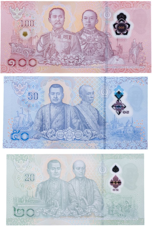 Таиланд - набор 20, 50, 100 бат 2018-2025 "Король Рама 10" Pick 142, 146, 147 полимер