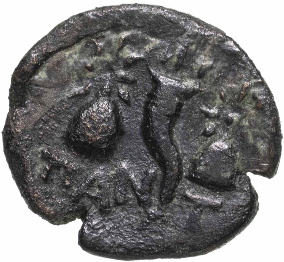 Реверс: ΠΑΝ-ΤΙ. Рог изобилия между шапками Диоскуров