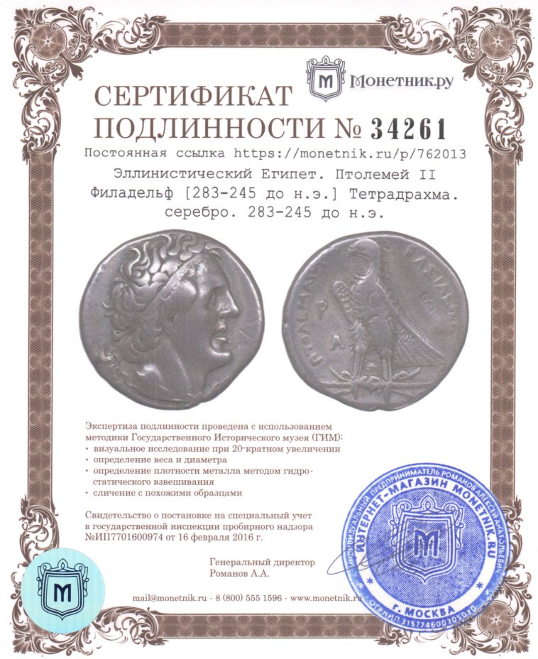 Правитель: Птолемей II Филадельф [Πτολεμαῖος Β' Φιλάδελφος] (283-245 до н.э.)