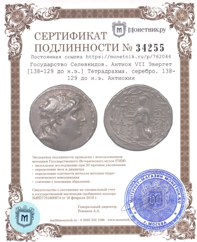 Правитель: Антиох VII Эвергет [Ἀντίοχος Ζ΄ Ευεργέτης] (138-129 до н.э.)