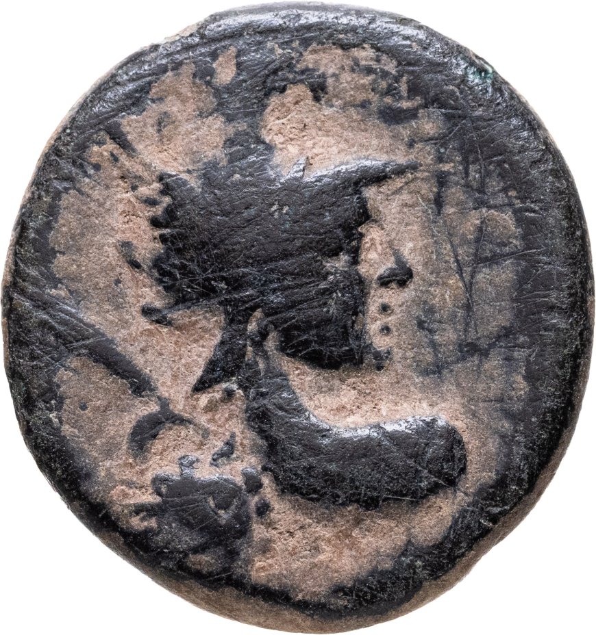 Аверс: бюст героя Персея во фригийской шапке, правой плечо вперёд, гарпа и голова горгоны Медузы за спиной, повёрнутый вправо.