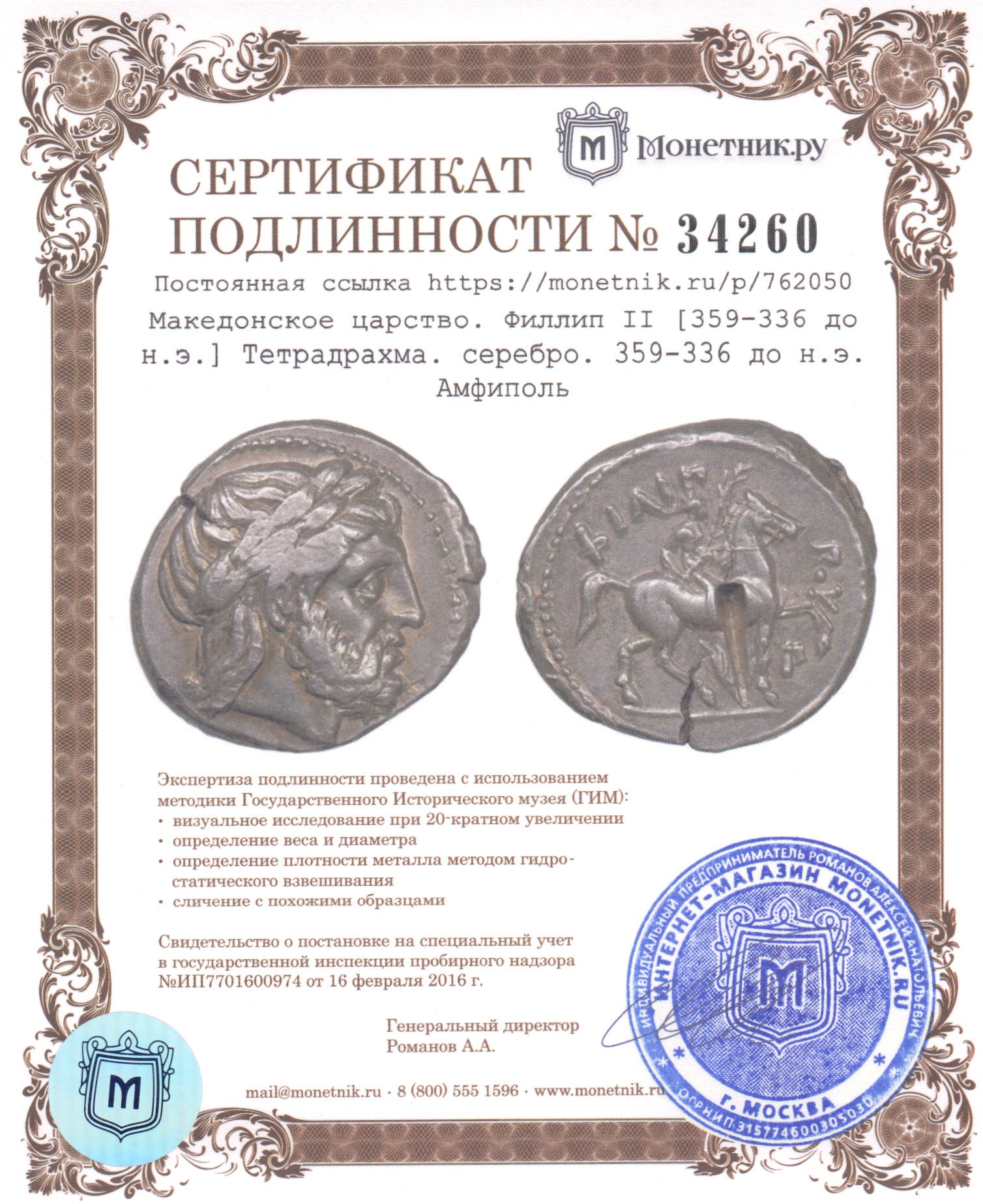 Правитель: Филлип II [Φίλιππος Β'] (359-336 до н.э.)