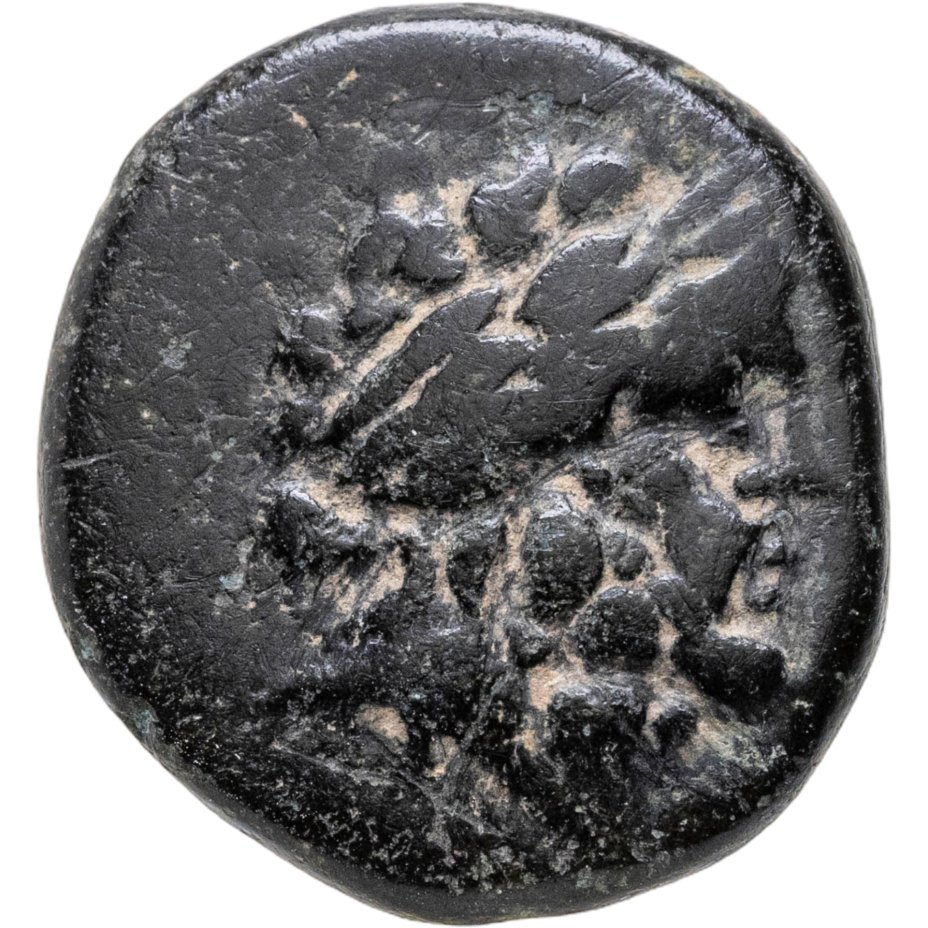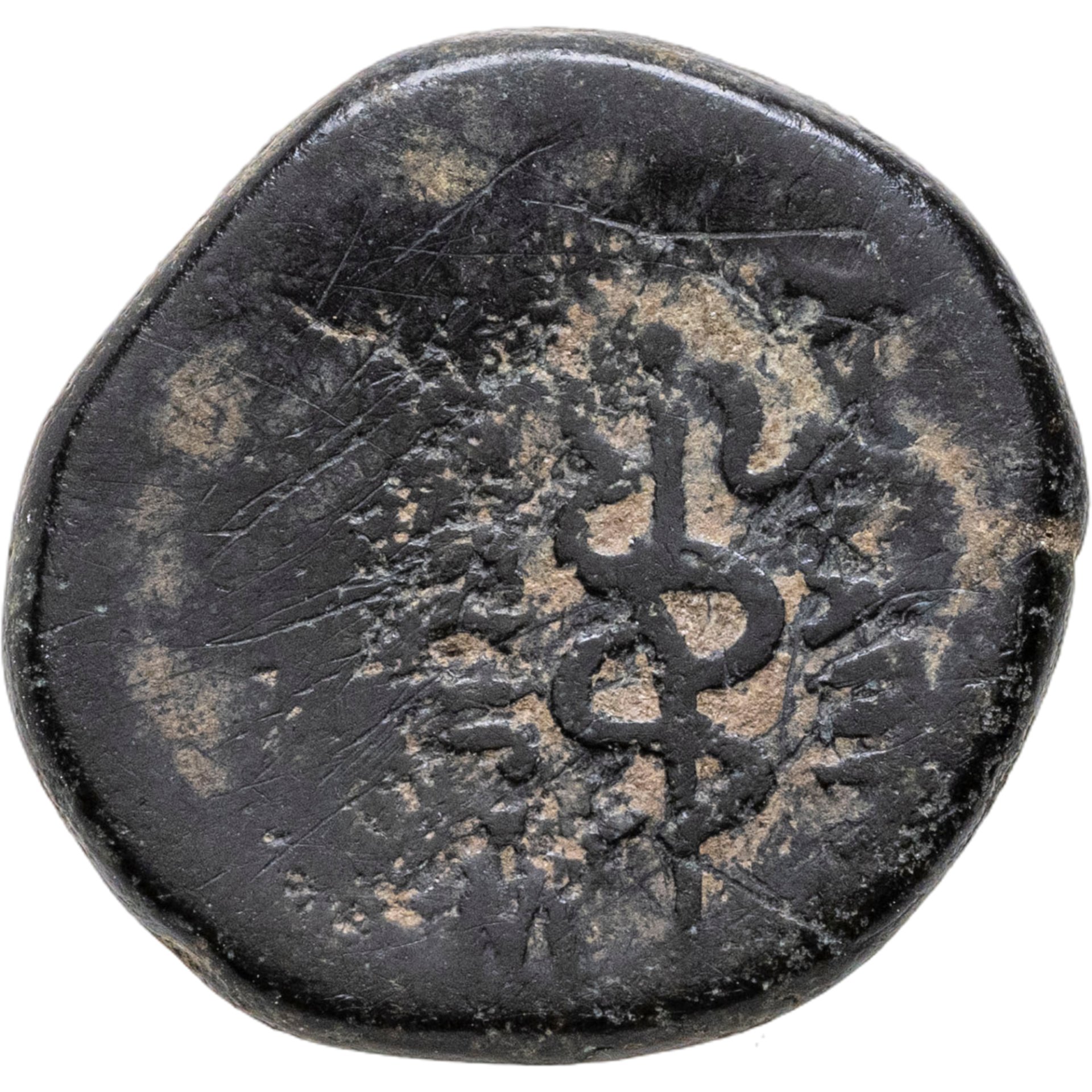 Аверс: голова Асклепия в лавровом венке, повёрнутая вправо.