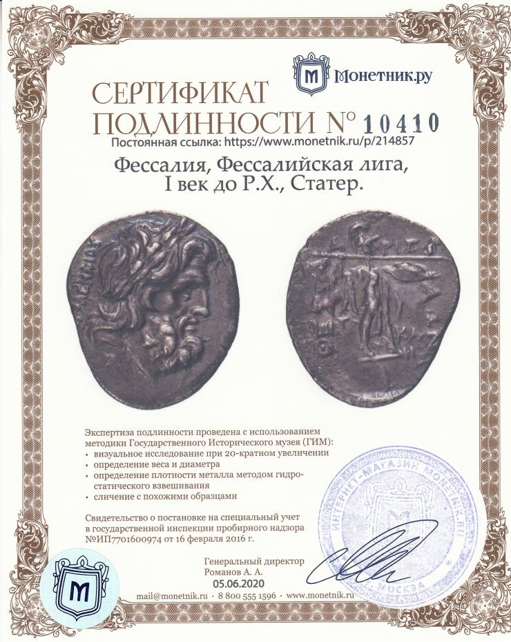 Фессалия, Фессалийская лига, I век до Р.Х., Статер.