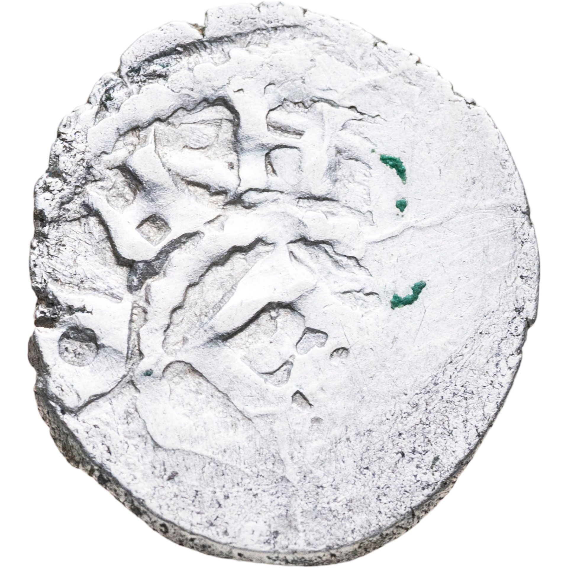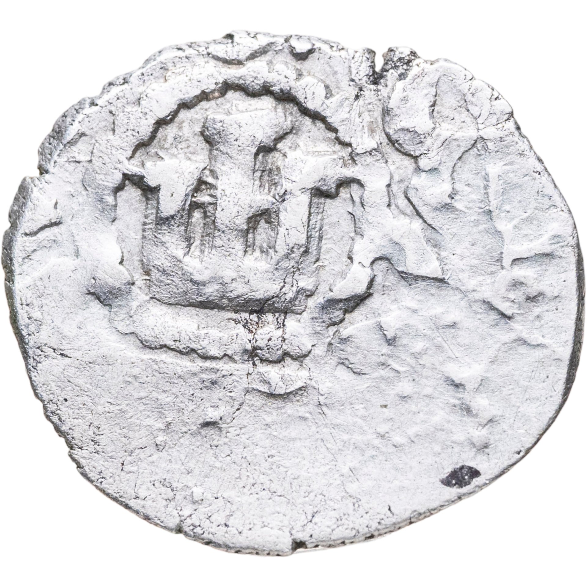Серебряный аспр периода 1438-1466 годов, совместный чекан генуэзской колонии Каффа (современная Феодосия) в Крыму от имени Хаджи Гирея.