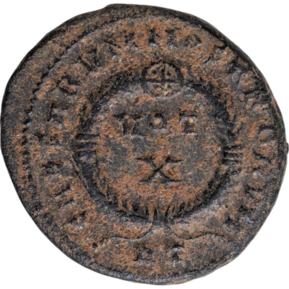 Реверс: CAESARVM NOSTRORVM, лавровый венок, внутри VOT / X, под обрезом RT.