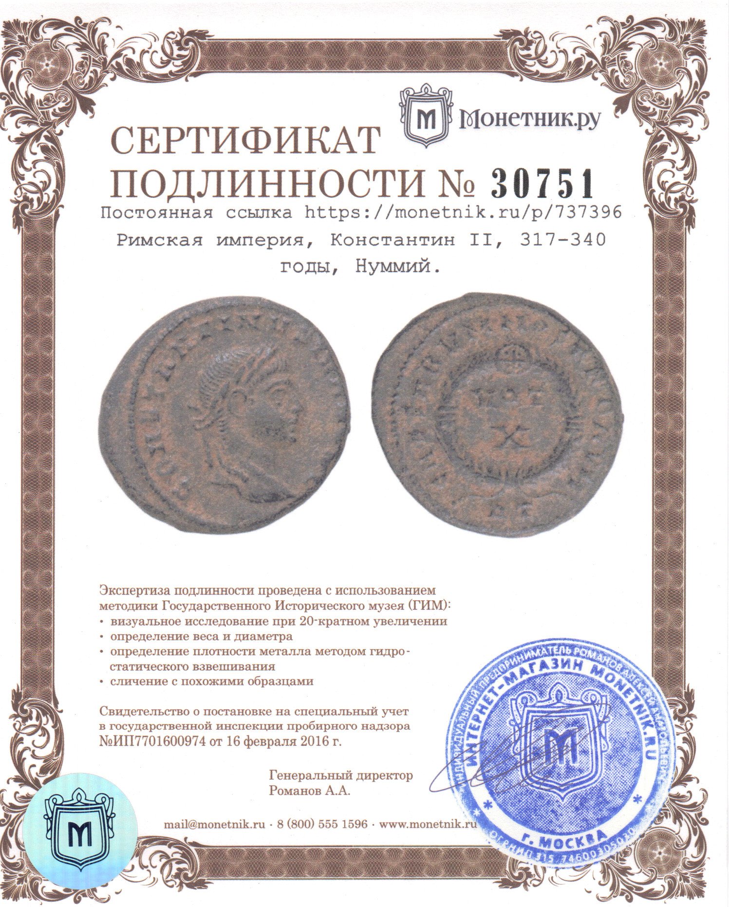 Аверс: CONSTANTINVS IVN NOB C, голова императора в лавровом венке, повёрнутая вправо.