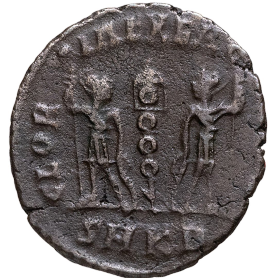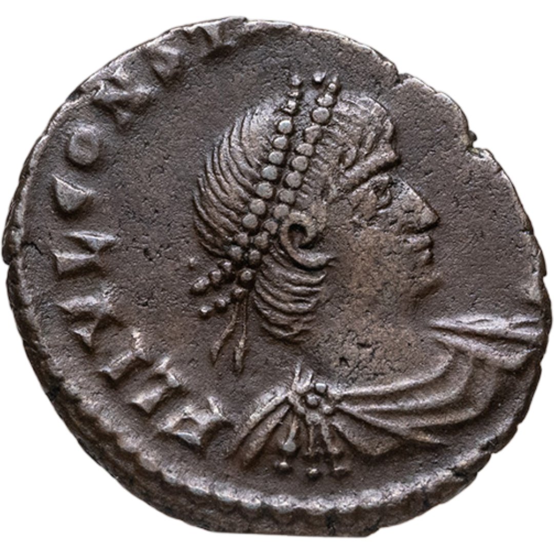 Бюст Констация II в панцире и плаще, вправо; на голове – лавровый венок.